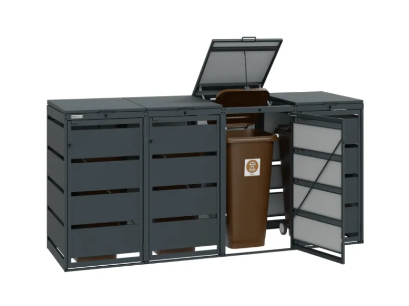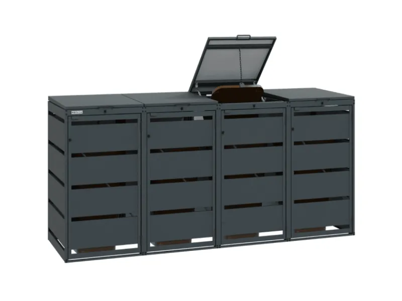 Mülltonnenboxen|MBOX24 Classic Mülltonnenbox für 4 Mülltonnen (120L) aus Verzinktem Stahl 4er Metall Mülltonnenverkleidung in Anthrazit Robust & Wetterfest