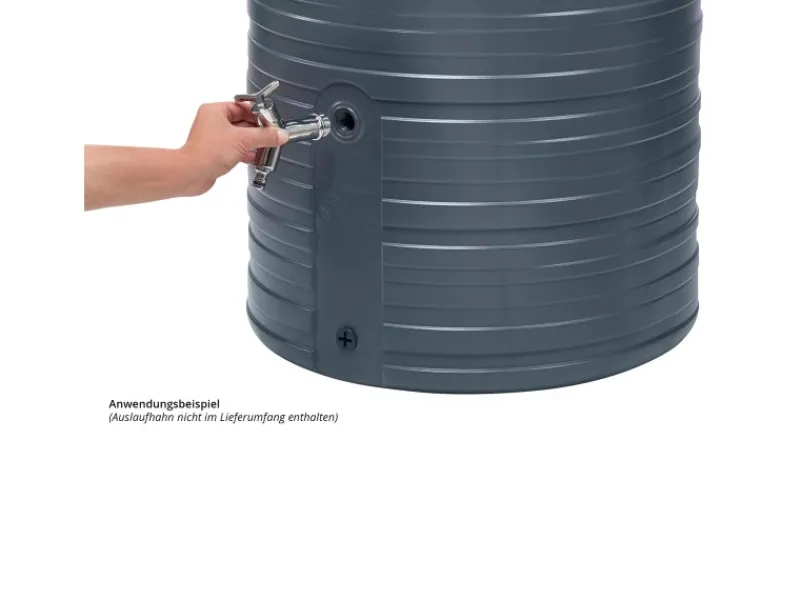 Lieferumfang: Regentonne, Windsicherung (Flachband), Zulaufdichtung DN 19/32.