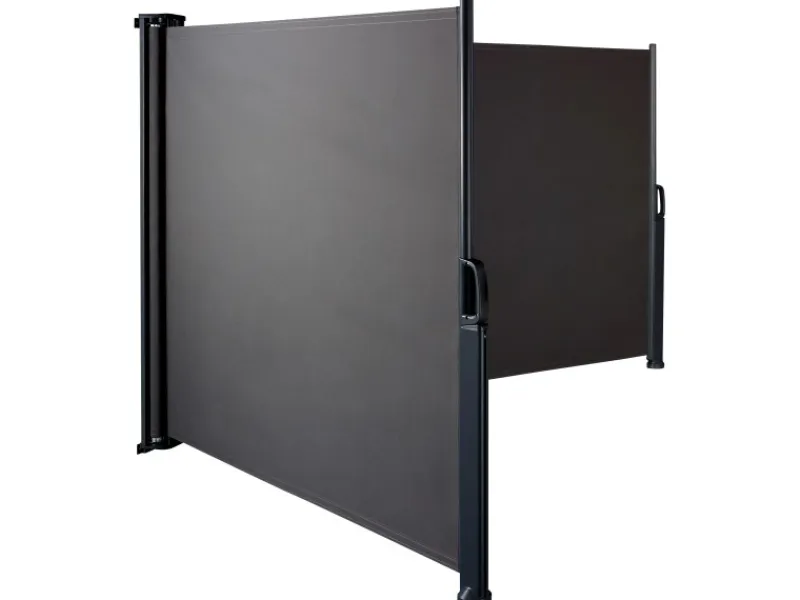 Ihr pulverbeschichtetes Aluminiumgestell in Anthrazit bietet eine hohe Stabilität sowie eine einfache Handhabung, sodass Sie schnell und mit wenigen, einfachen Handgriffen den modernen Sicht- und Windschutz zum Einsatz bringen können. Manuell ausgezogen hat die freistehende Markise bei einem Neigungswinkel von 90° – 180° eine Breite von 300 cm je Seite.