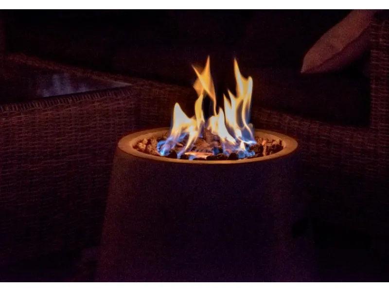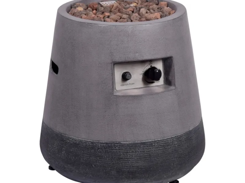 Die Steine sind ein hervorragender Wärmespeicher und verbreiten langanhaltende, angenehme Wärme, sobald sie erhitzt werden. Die Feuerschale wird mit Propangas betrieben und verfügt über einen elektrischen Anzünder, der über eine AAA-Batterie betrieben wird. Ein automatischer Abschaltmechanismus garantiert maximale Sicherheit bei der Benutzung der Feuerschale. Zu dieser gehören eine Polyester-Abdeckung, ein Gasschlauch mit Regler und ein Metallständer.
