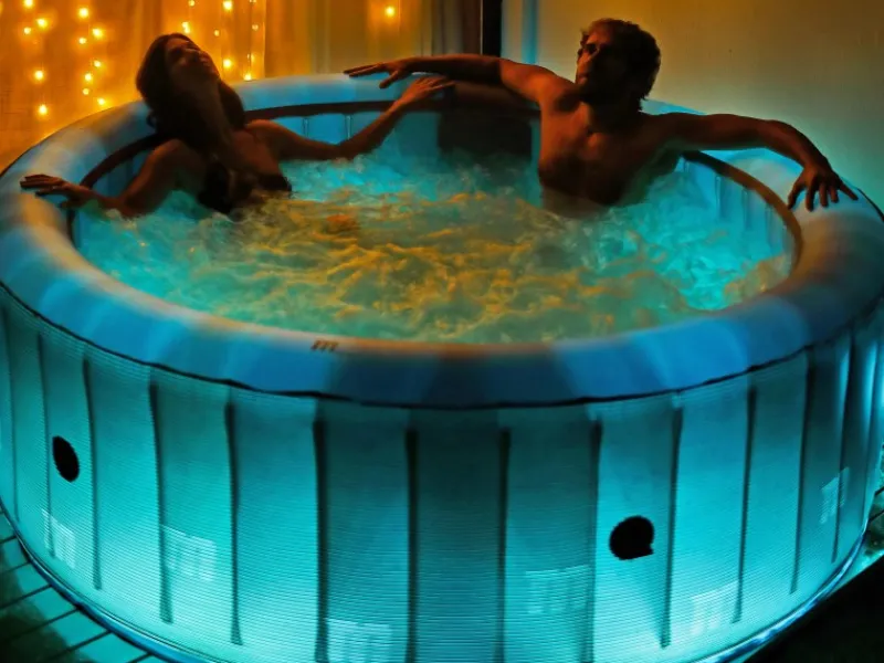 Selbstaufblasend mit Zusatzschlauch und Manometer; Leicht; Strukturierter Innenboden; Außenverkleidung mit transparentem Muster für einen glänzenden Lichteffekt mit LEDs; Hochwertiges LED-Band mit Intervallfunktion
