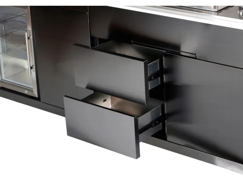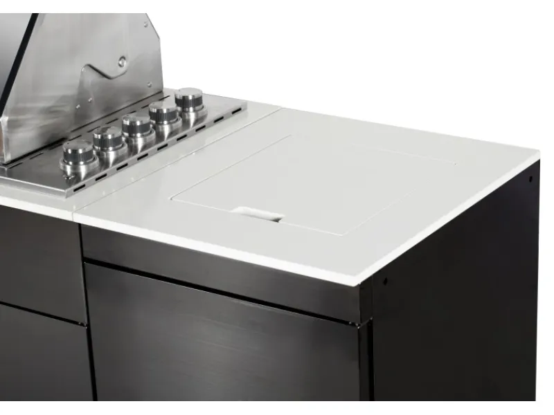 Die mitgelieferte Plancha-Platte aus Edelstahl ergänzt den Gasgrill optimal und ermöglicht die Zubereitung von kleinteiligem Grillgut wie Meeresfrüchten, Grillkäse, Pancakes oder Burger-Patties. Die Plancha-Platte ist ideal für gesundes und fettarmes Grillen, da sie verhindert, dass Fett in die Flammen tropft und ungesunde Dämpfe entstehen. So ist es ganz einfach, mit dieser durchdachten Outdoorküche und dem sinnvollen Zubehör das nächste Grillfest zu etwas ganz Besonderem zu machen.