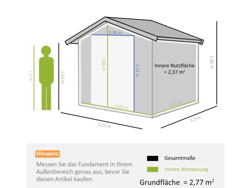 Gesamtmaße zum Gartenhaus 213L x 130B x 185H cm