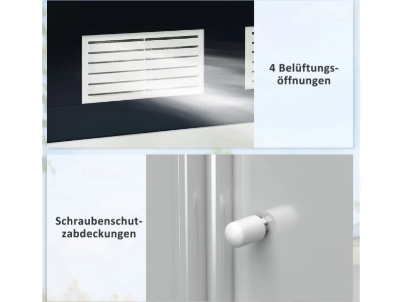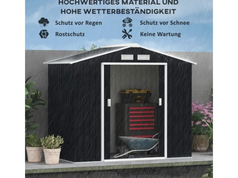 ● Großer Innenraum des Gartengerätehauses bietet ausreichend Platz für eine Vielzahl an Gartenwerkzeugen, Gartenzubehör und Werkzeugen