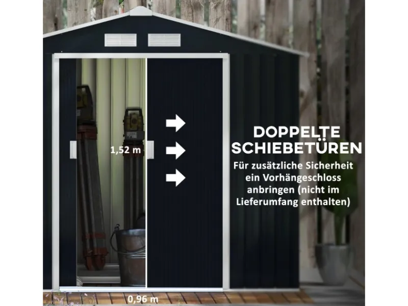 ● 2 leichtgängige Schiebetüren des Gartenhauses für einen schnellen und einfachen Zugang