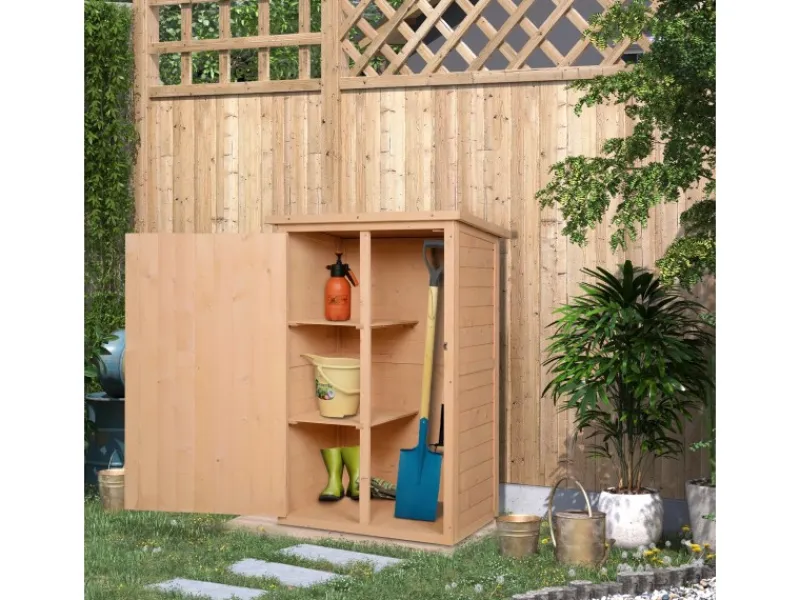 Schaffen Sie eine paradiesische Ordnung in Ihrem Garten mithilfe dieses kompakten und praktischen Geräteschuppens von Outsunny! Trotz seiner kompakten Konstruktion bietet er reichlich Raum für unterschiedlichste Geräte und Werkzeuge. Besonders robust gebaut und mit einem wetterfesten Anstrich versehen, wird Ihnen dieser Gartenschrank eine lange Zeit zuverlässig dienen. Das geneigte Dach lässt Regenwasser ungehindert abfließen und die verriegelbare Tür verhindert, dass Tiere eindringen.