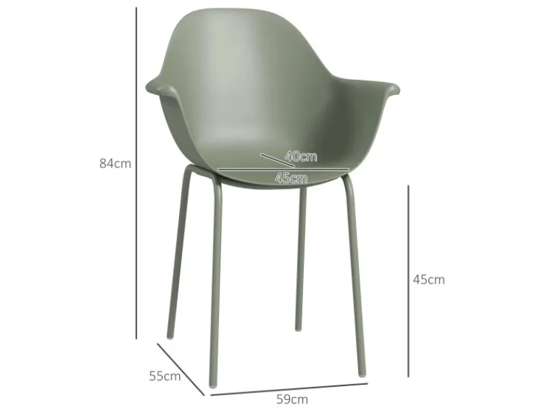 Entspannen Sie sich zu zweit und genießen Sie die Natur mit diesem Set aus vier Gartenstühlen von Outsunny. Das ergonomische Design mit hoher Rückenlehne und Armlehnen bietet optimalen Komfort und Unterstützung für Ihren Körper. Die Stühle sind aus hochwertigem Kunststoff gefertigt, was ein angenehmes Sitzerlebnis garantiert. Gönnen Sie sich entspannte Stunden im Freien mit unseren zuverlässigen Metall-Gartenstühlen.