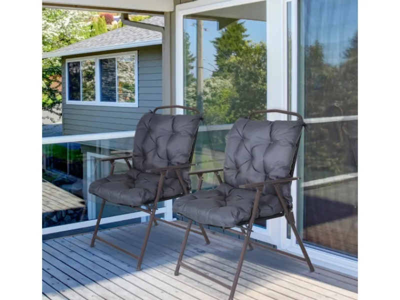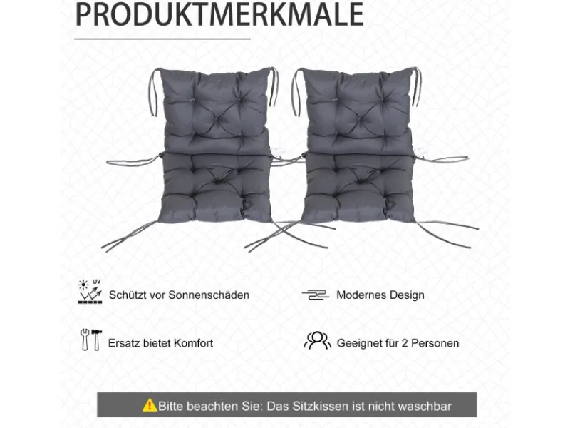Outsunny Gartenstuhlauflagen|2er Set Auflage Gartenstuhlauflagen Sitzpolster Garten Kissen Grau