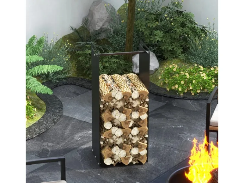● Elegante schwarze Oberfläche des Holzlagers passt zu jedem Kaminambiente