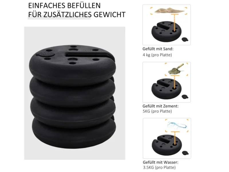 · 4 Zusatzgewichte aus robustem HDPE-Kunststoff: haltbar und vor dem Befüllen leicht zu transportieren