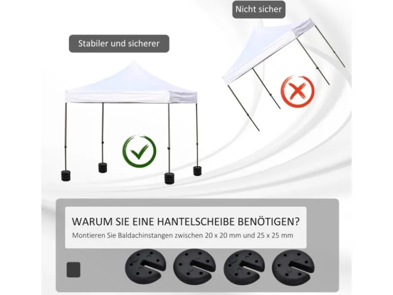 · Geeignet für Faltpavillons mit Standfüßen von 20 x 20 mm bis 35 x 35 mm