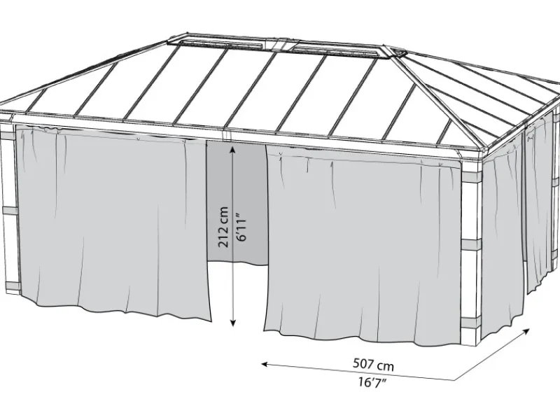 – einfach zu befestigende versteckte Haken – Freilaufend auf der Schienenkonstruktion des Pavillons