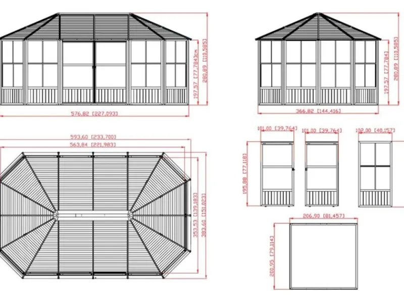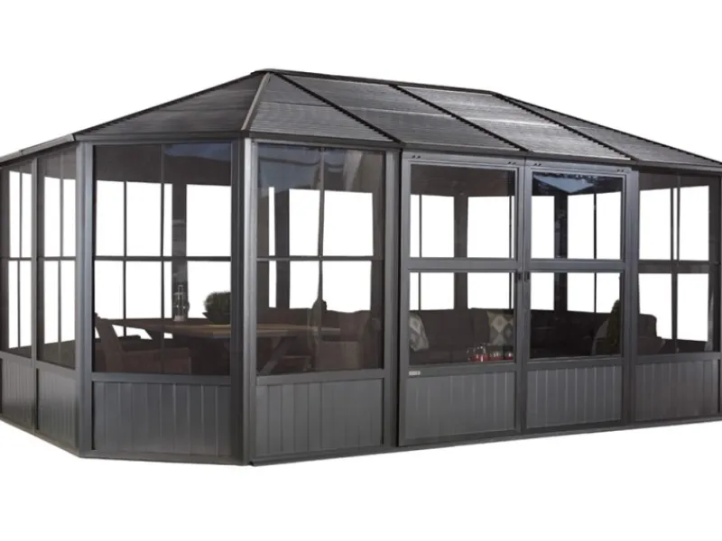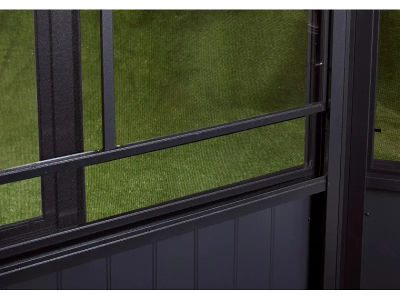 Der Aufbau erfolgt durch mindestens 2 Personen mit Hilfe von handelsüblichen Werkzeugen sowie einer detaillierten Schritt-für-Schritt Anleitung. Die Schiebetüren können flexibel auf allen Seiten montiert werden.Aufbauzeit ca. 10 Stunden. Der Rahmen wird durch Schrauben und Dübeln (nicht im Lieferumfang enthalten) am bestehenden Untergrund befestigt.Der Pavillon ist für den ganzjährigen Gebrauch geeignet.
