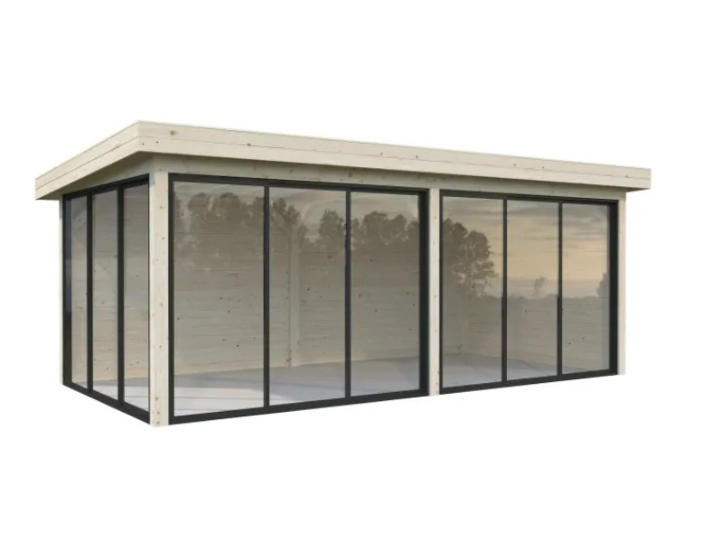 Ein Fußboden sowie Dacheindeckung und Regenrinne sind optional lieferbar. Der Pavillon wird aus naturbelassenem FSC®-zertifiziertem nordischen Fichtenholz gefertigt. Das Holz muss nach dem Aufbau mit einem Grundieranstrich sowie einer Endbehandlung zum Schutz vor Witterungseinflüsse versehen werden.