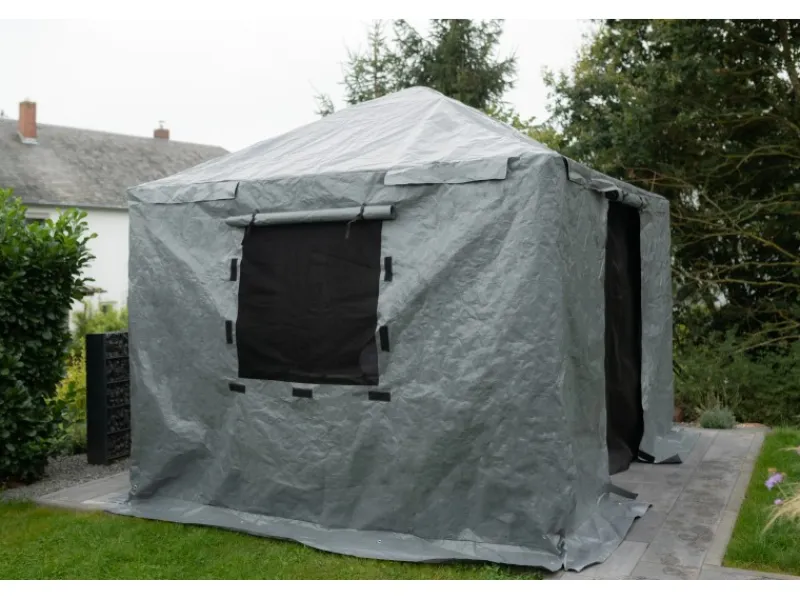 Die Winterabdeckung verwandelt Ihren Pavillon im Handumdrehen in einen Gartenschuppen, sodass Sie diesen auch im Winter als Stauraum von Gartenmöbeln oder Gill nutzen können.Bitte achten Sie darauf, nur Gegenstände zu verstauen, welche kälteresistent sind.