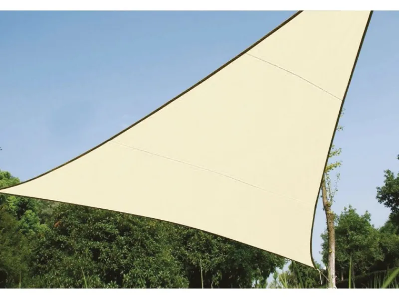 Das cremefarbige Perel Dreieck-Sonnensegel eignet sich hervorragend als Sonnenschutz für Terrassen oder Gärten. Es bietet einen UV-Schutz von 90 % und ist wasserabweisend. Die Seiten sind bogenförmig, damit das Segel gespannt bleibt. Des Weiteren ist es mit D-Ringen (Metall, verzinkt) an allen Ecken ausgestattet und waschmaschinenfest.