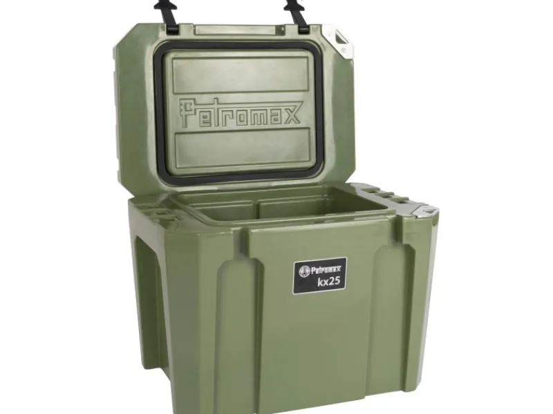 Der Innenraum der Eisbox ist so konstruiert, dass bei 25 l Volumen bis zu 24 x 0,33 l Dosen oder 12 x 1 l Flaschen aufrecht verstaut und transportiert werden können. Auch fangfrischer Fisch oder mitgebrachter Proviant finden in der Petromax Kühlbox ihren idealen Aufbewahrungsort.