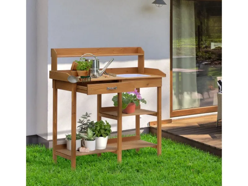 ● Schublade mit Metallgriff sorgt für sichere Lagerung von Gartenutensilien