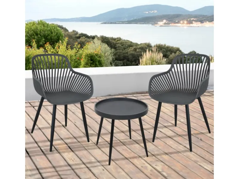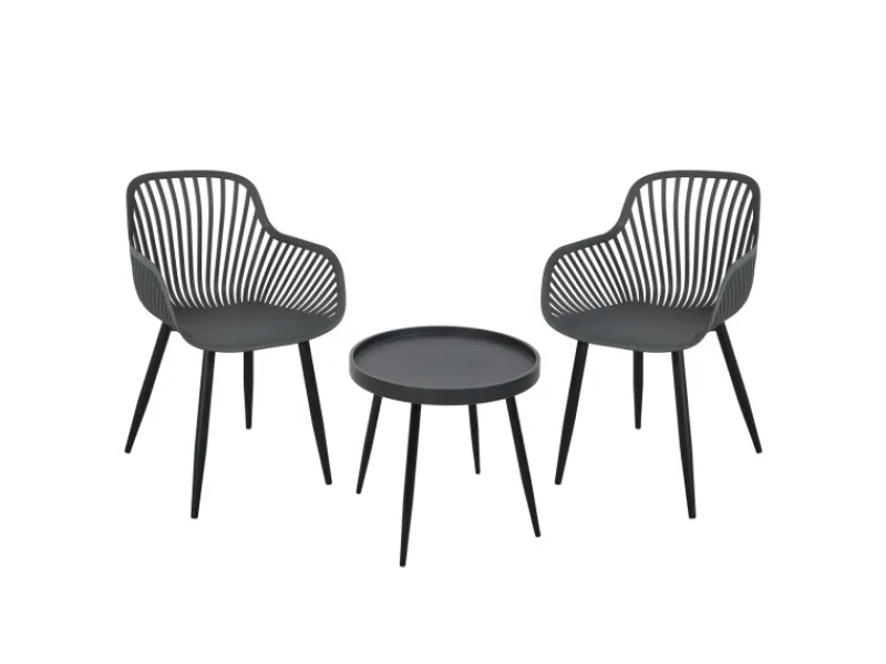 Trotz seiner kompakten Größe bietet das 3-teilige Set, bestehend aus zwei Stühlen und einem großzügigen Tisch, 100% Komfort. Es ist die perfekte Wahl für alle, die Wert auf Qualität und Design legen, ohne dabei auf Bequemlichkeit verzichten zu müssen.
