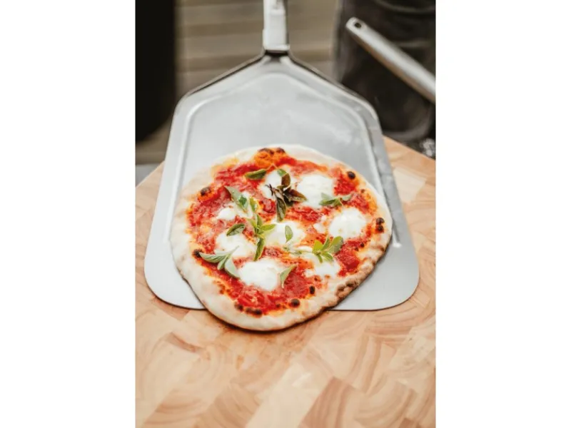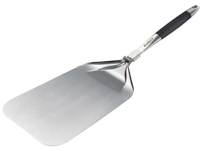 Der Enders Pizzaschieber Premium aus Edelstahl ist ein hochwertiger und zuverlässiger Helfer beim Befördern von kleinen und großen Pizzen. Durch seine Konstruktion ist er ideal zum schnellen und leichten Rotieren von Pizzen geeignet. Der Schieber lässt sich in der Mitte zusammenklappen, um eine platzsparende und bequeme Lagerung zu ermöglichen. Der ergonomische Griff verfügt über eine Soft-Touch-Oberfläche für eine angenehme Handhabung.