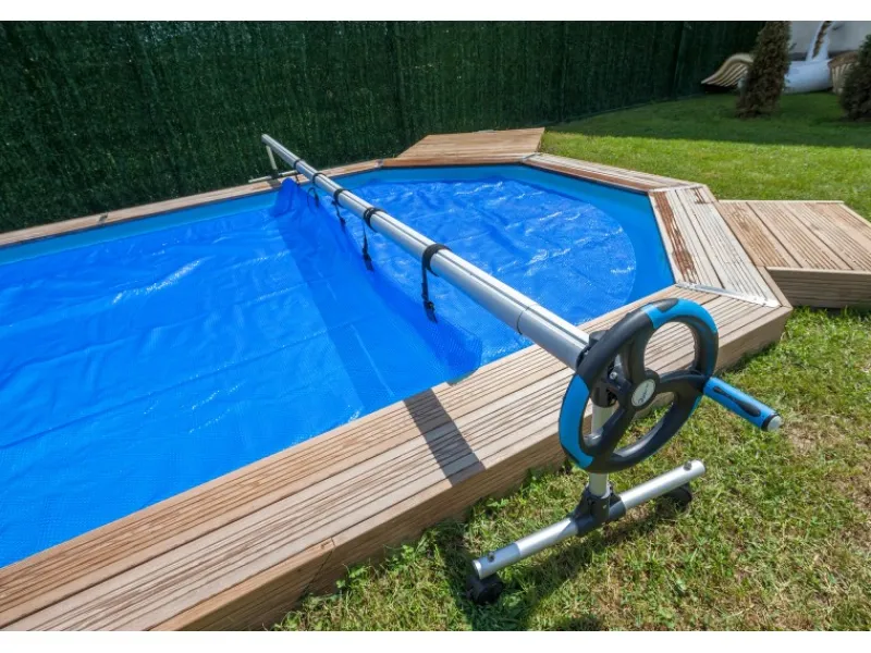 Er erleichtert das Auf- und Abrollen von Solar- oder Sommerabdeckungen und sorgt für eine ordentliche sowie sichere Aufbewahrung.