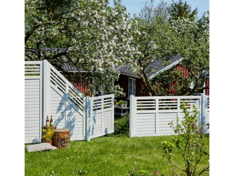 Klare Linien und solide Materialien vereinen sich in dem schönen Decora Fence.Decora ist vom klassischen Holzlattenzaun mit einem Spalier an der Oberkante inspiriert. Der Zaun erfüllt das Bedürfnis nach Schutz und Privatsphäre, lässt aber dennoch den Blick auf die Umgebung frei. Kombinieren Sie Ihre Decora-Zaunlösung mit Toren, schrägen und horizontalen Zaunelementen in Weiß oder Schwarz, um die Umgebung und die Landschaft auf schöne und ausgewogene Weise zu ergänzen.