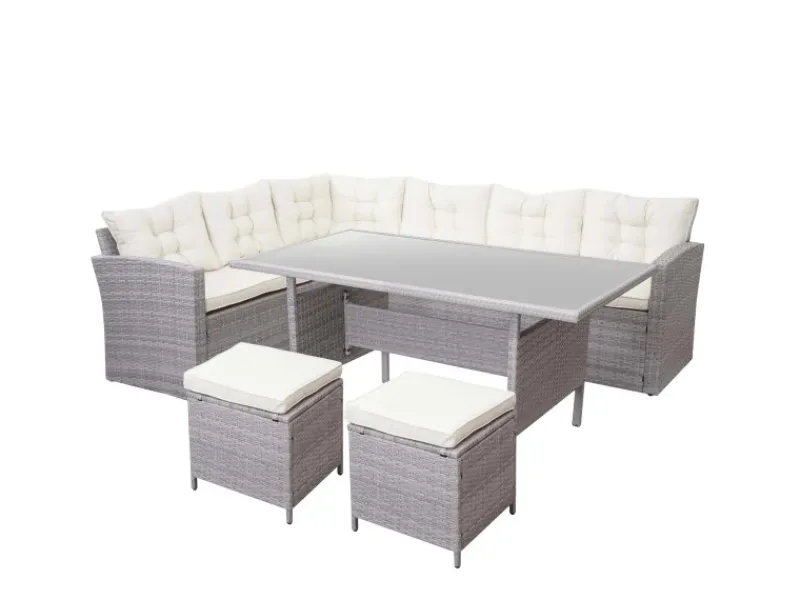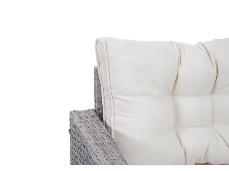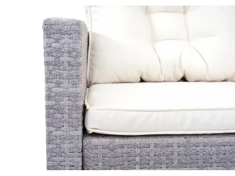 Sie sind auf der Suche nach einer Sitzgruppe, um Ihrem Garten oder Ihrer Terrasse den letzten Schliff zu verpassen? Dann haben Sie mit dieser schicken Poly-Rattan Garnitur die ideale Voraussetzung dafür. Durch ihr modernes Design wirkt sie immer einladend – sei es morgens zum Frühstück oder nachmittags zu einer gemütlichen Tasse Kaffee. Getränke, Sonnencreme oder kleine Snacks können einfach auf dem Tisch abgelegt werden. Die bequeme Polsterung sorgt für ein gemütliches Sitzgefühl für Sie und Ihre Gäste. So wird diese Garnitur ganz bestimmt zu Ihrem neuen Lieblingsplatz.