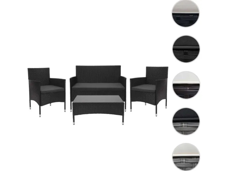 Diese Sitzgarnitur fügt sich durch ihr schlichtes Design nahtlos in jede Umgebung ein und sieht immer aus, als würde sie genau dort hingehören. Durch die Farbkombination der Sitzpolster und des Poly-Rattans, erscheint die Sitzgarnitur in einem ganz besonderen Licht und sorgt somit für ein geschmackvoll abgerundetes Gesamtbild. Alles was Sie zum Entspannen benötigen, kann auf dem Tisch abgelegt werden. Egal ob Prospekte, Sonnencreme, Getränke oder Snacks.