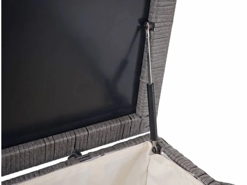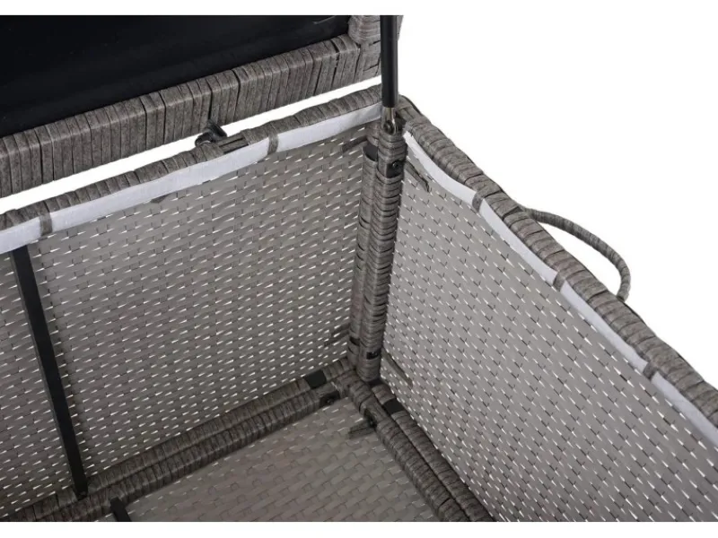 – Materialzusammensetzung: Geflecht: Poly-Rattan, Gestell: Pulverbeschichteter Stahl, Einlage im Deckel: PVC (Polychlorid)