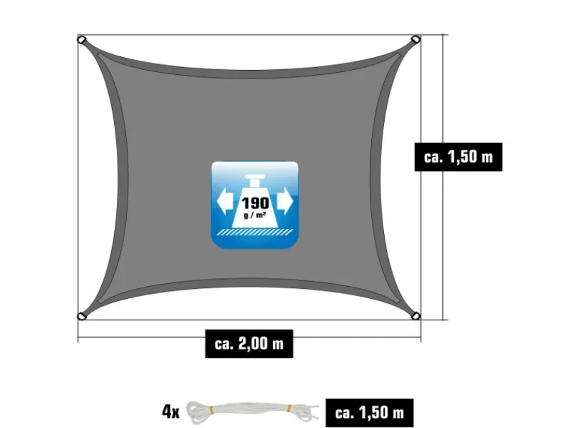 Straff gespanntes Segel durch konkaven Schnitt – perfekter Schattenplatz für Strand und Wiese.