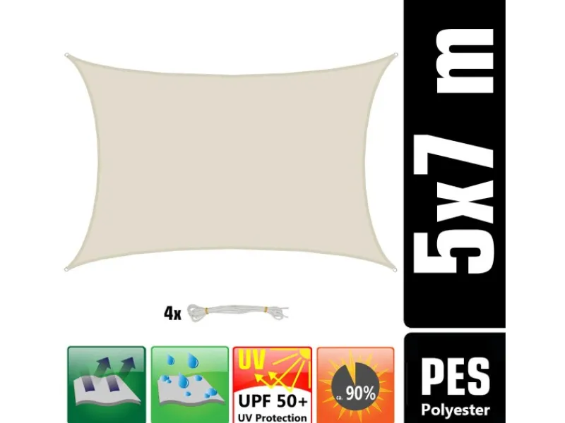 Wasserdicht mit 98% UV-Schutz. Großes PES Sonnensegel rechteckig z.B. als Terrassenüberdachung