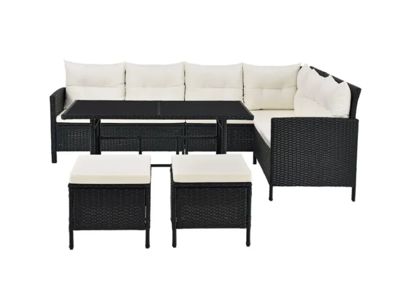 – Ecksofa, 2 Hocker & 1 Tisch – ideal für bis zu 7 Personen