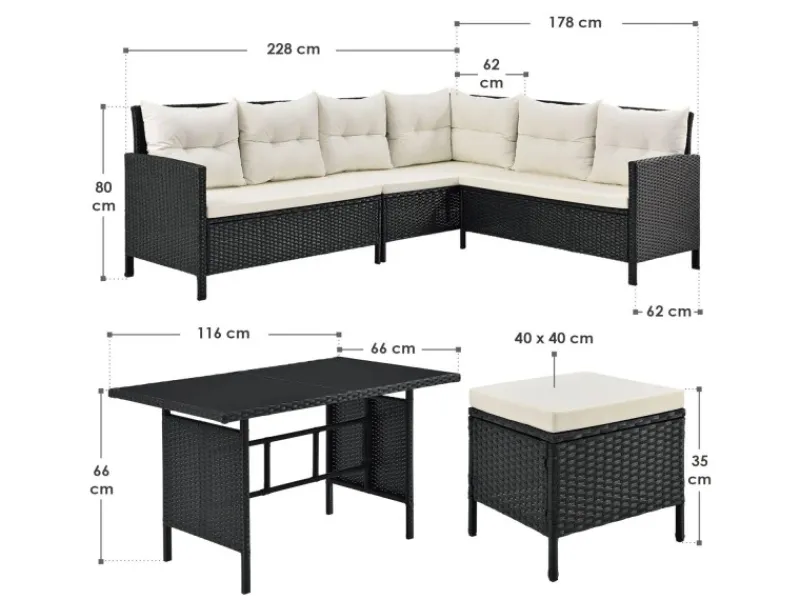 – Tisch (LxBxH): 116 x 66 x 66 cm