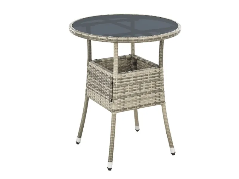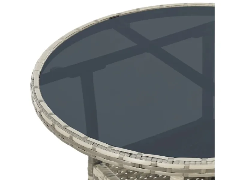 Aus wetterbeständigem Polyrattan, mit einem pulverbeschichteten Stahl-Gestell und einer Platte aus Sicherheitsglas, ist der Tisch widerstandsfähig und langlebig.