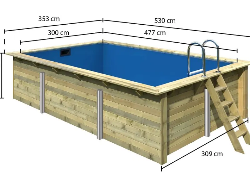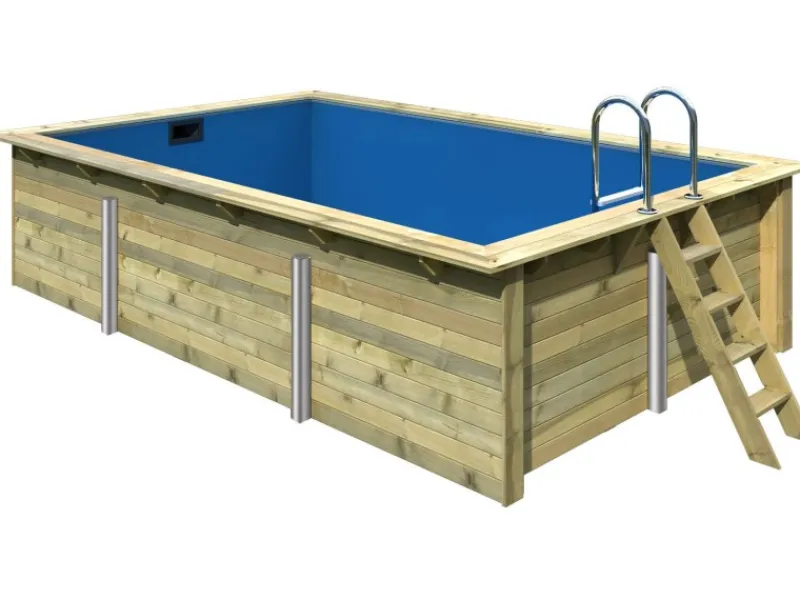 Der Karibu Rechteckpool besteht aus chromfreien kesseldruckimprägnierten Rundprofilhölzern, die nicht nur optisch ansprechend, sondern auch langlebig und robust sind. Das im Lieferumfang enthaltene Unterlegvlies schützt den Poolboden vor Beschädigungen, während die 0,6 mm starke Poolfolie mit Einhängebiese für eine sichere Abdichtung und eine hohe Lebensdauer sorgt.
