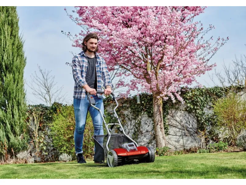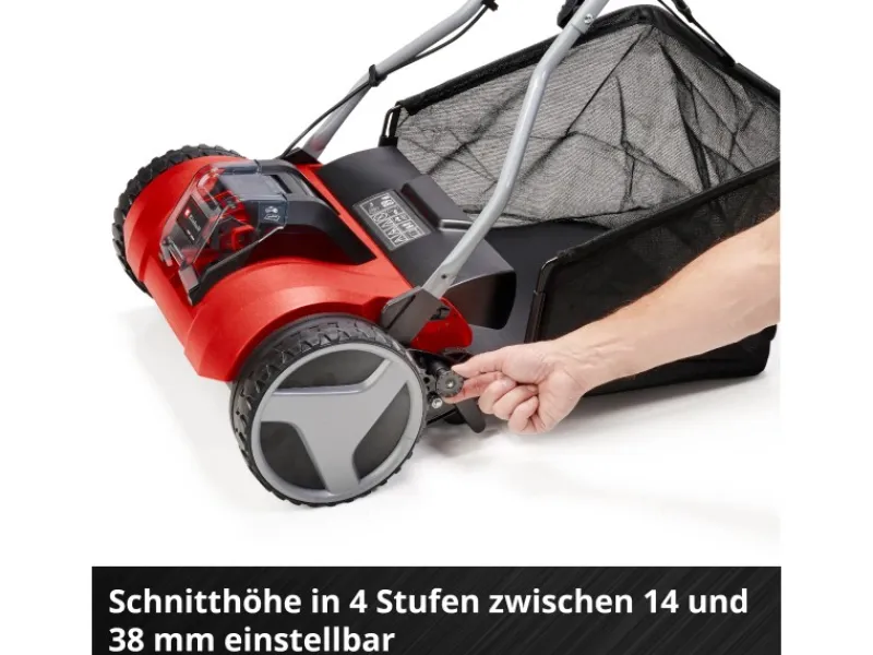 Der Hand-Spindelmäher ist mit einer kugelgelagerten Mähspindel mit 5 hochwertigen Stahlmessern ausgestattet. Die Schneidmesser sind präzisionsgeschliffen und sorgen für saubere und golfrasen-taugliche Schnittergebnisse in deinem Garten. Die berührungslose Schneidtechnik ist dabei besonders leise und kraftsparend. Über vier Stufen kannst du die Schnitthöhe anpassen: 14 mm, 23 mm, 32 mm oder 38 mm. Die Schnittbreite beträgt 38 cm