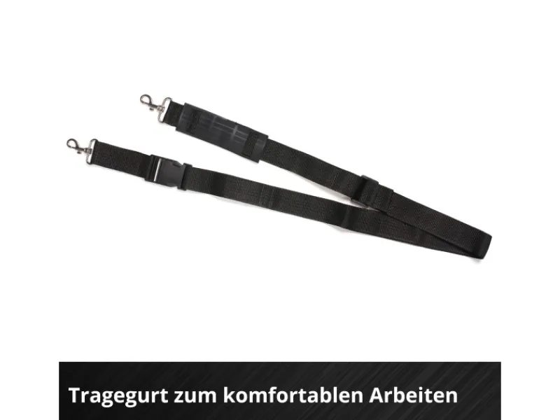 Gummierte Haltefläche am Stiel und Tragegurt bieten angenehme Geräteführung