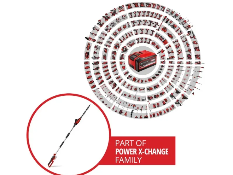 Die Akku-Teleskop-Heckenschere ist Mitglied der Einhell Power X-Change-Familie und wird mit einem leistungsstarken 18 V Lithium-Ionen-Akku der Plattform betrieben. Die Akkus können flexibel für alle Gartengeräte und Werkzeuge der Power X-Change-Familie verwendet werden. Mit einer praktischen LED-Füllstandsanzeige am Akku arbeiten Sie besonders vorausschauend. Zudem sind die Akkus dank der automatischen ABS-Akkuüberwachung äußerst robust und langlebig.