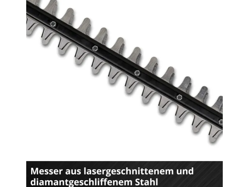Die Messer aus lasergeschnittenem und diamantgeschliffenem Stahl sorgen für besonders präzise und saubere Schnitte. Sie erzielen eine großzügige Schnittlänge von 410 mm. Das robuste Metallgetriebe ist auf eine hohe Lebensdauer ausgelegt und erzielt maximal 1.400 Schnitte pro Minute. Somit arbeiten Sie mit der Langstiel-Heckenschere besonders effizient und mit einem zügigen Arbeitsfortschritt.