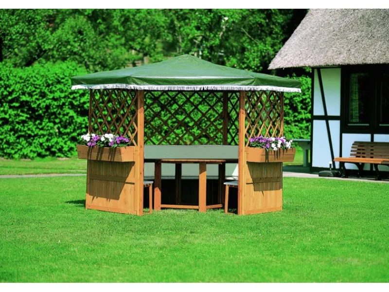 Passende Sitzauflagen und Blumenkästen sind als Zubehör lieferbar (ohne Möbel).
