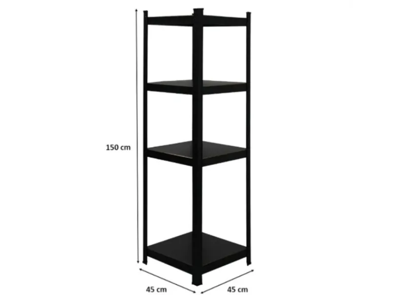 Das Schwerlastregal ist 150 cm hoch, 45 cm breit und 45 cm tief