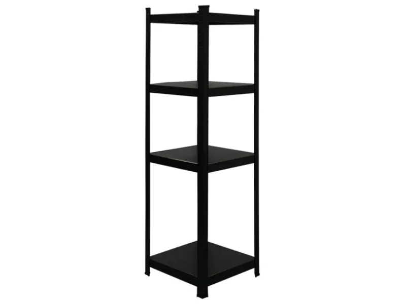 Mit einer Fachlast von 100 kg bietet das Regal eine zuverlässige Lösung zur Aufbewahrung – sei es in der Werkstatt, zu Hause oder im Büro. Die mattschwarze Oberfläche verleiht dem Regal einen modernen und eleganten Look, der sich nahtlos in jede Umgebung einfügt. Selbstverständlich sind die 4 Fachböden in der Höhe verstellbar und zwar in einem 2,5cm Raster.