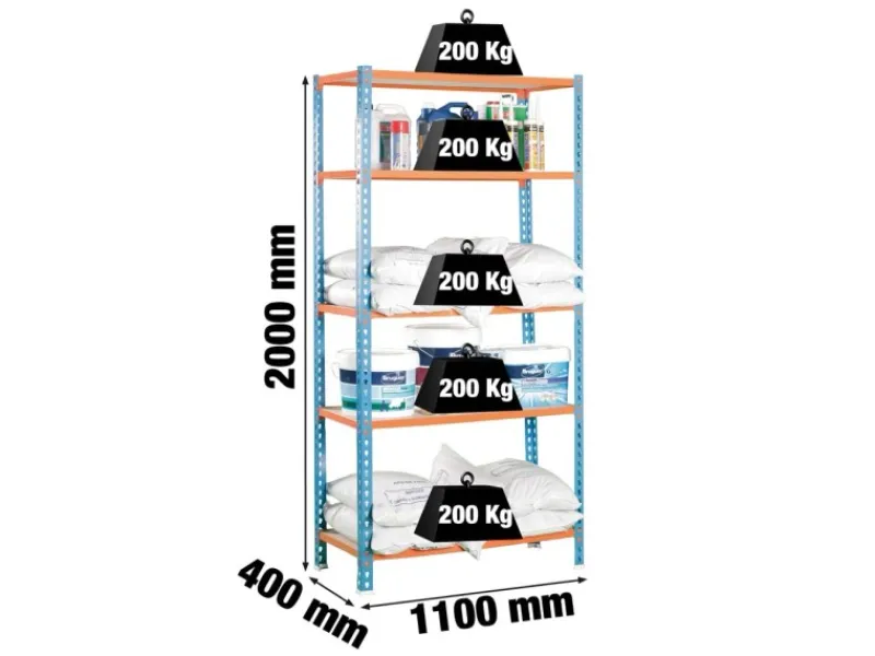 PROREGAL Sportgeräte|Schwerlastregal Big Muli HxBxT 200 x 110 x 40 cm 5 Fachböden Fachlast 200 kg Blau-Orange