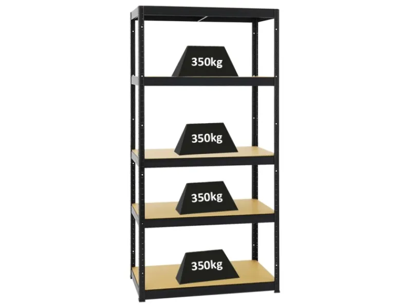 5 Fachböden aus MDF-Holzplatten mit einer Traglast von jeweils 350 kg & einer Stärke von 8 mm