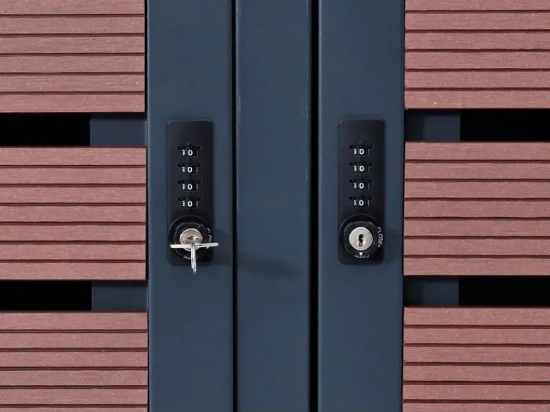 – Sicher verschließbar: Türen mit Zahlenschloss und Sicherheitscode abschließbar