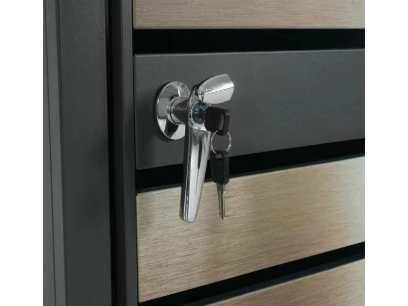 Hinweis: Im Lieferumfang ist ein Schlüssel für das Schloss enthalten. Bitte achte bei der Kombination mehrerer Modelle auf die passende Gesamttiefe. Die Verkleidung ist UV- und wetterbeständig geprüft.
