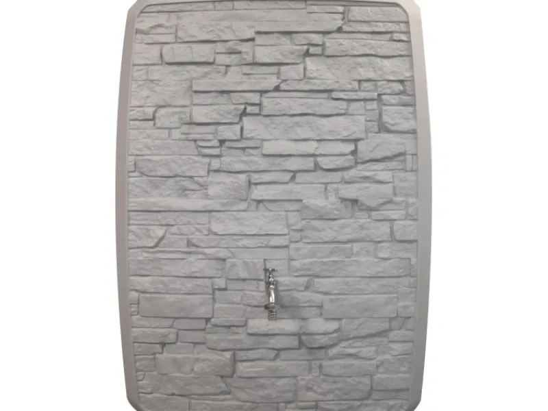 Der Wandtank verfügt über zwei unterschiedlich gestaltete Oberflächen, die Sie frei nach Ihren Wünschen aufstellen können. Der Regenspeicher ist besonders schmal gebaut und benötigt mit den Abmessungen 105 cm x 79 cm x 38 cm nur sehr wenig Platz. Gleichzeitig verfügt er über eine hohe Speicherkapazität von 250 l.