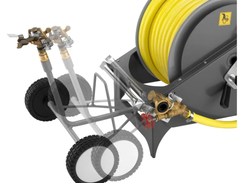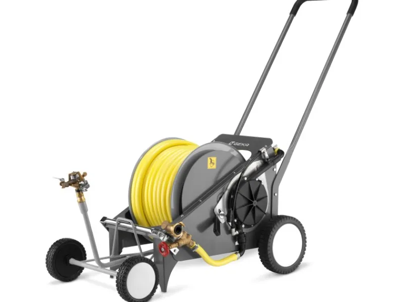 – Der Geka Regnerwagen verfügt über eine automatische Beregnung mit selbständiger Abschaltung, Turbinenantrieb mit regulierbarem Wasserdurchfluss bzw. Einzugsgeschwindigkeit.