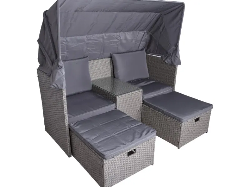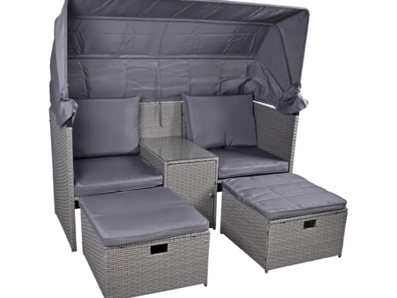 Insgesamt bietet die Relax-Lounge Saint-Tropez eine perfekte Kombination aus Stil und Funktionalität. Mit dem mitgelieferten Zubehör, darunter der Beistelltisch, die Hocker und das Sonnendach, ist dies ein komplettes Set für gemütliche Stunden im Freien. Egal, ob Sie einen geselligen Abend mit Freunden verbringen oder einfach nur einen ruhigen Nachmittag mit einem Buch genießen möchten, diese Lounge ist der ideale Ort dafür.