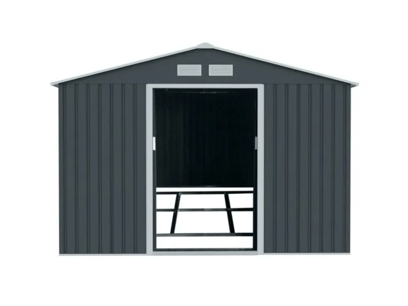 Aus robustem und verzinktem Stahl gefertigt, ist dieses Gerätehaus für alle Jahreszeiten geeignet